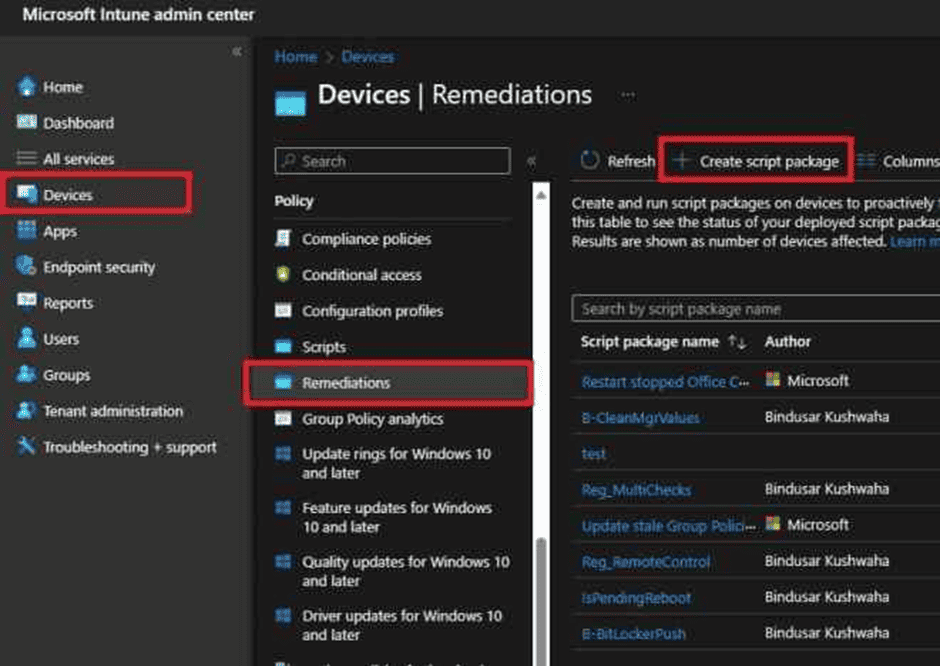 - In the Microsoft Endpoint Manager admin Center, select Reports > Endpoint analytics > Proactive remediations. Or with new option, its available in Intune Portal Directly as shown above.