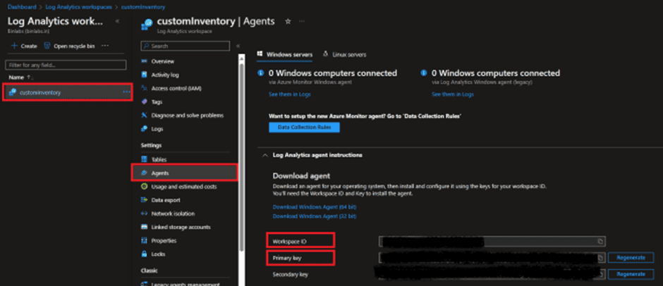 To obtain the Workspace ID and Primary Key for a Log Analytics workspace, you can follow these steps:
